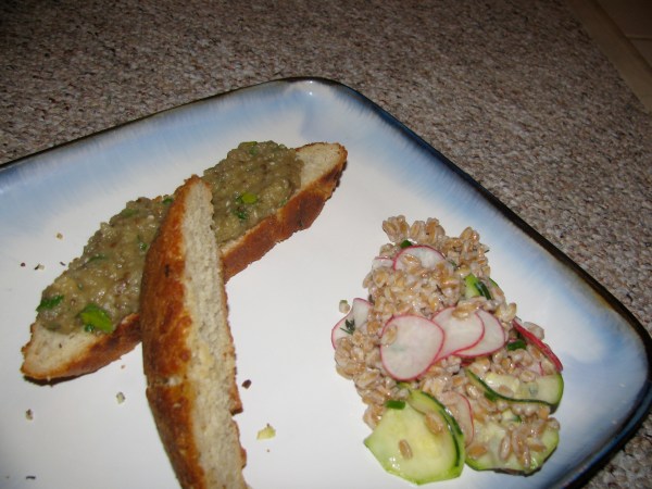 I enjoyed my bread with a fresh baba ganoush and buttermilk farro salad on the side.  Someday I might tell you the story of that salad and how it almost defeated me.