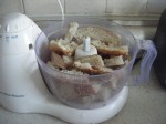 Step 4: Put your bread crusts in the food processor. Unless you have a monster food processor, in which case we’re jealous, you will probably have to work in batches. Don’t worry, you’re not seeing things – this picture is from the boule crusts, even though everything else is from the second incarnation of the scalloped tomatoes. Process until it looks like bread crumbs, although they will be and should be coarser than bread crumbs you’d buy in the store.