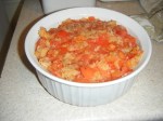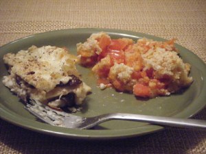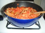 Thursday night, Amanda had a dinner party for something school-related. She promised Emily she’d invite her over for leftovers on Friday night. But there were no scalloped tomatoes left, and Amanda really, really, really wanted to eat more of them. So for a small addendum to our leftovers party menu, we whipped up another batch and changed the recipe a bit.