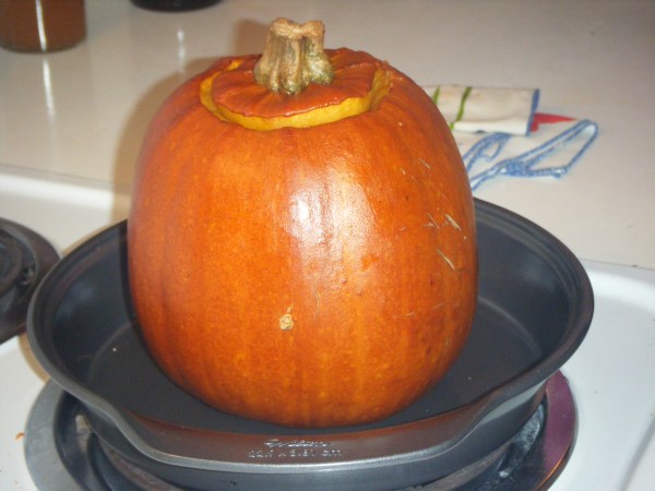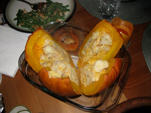 “Turkey” Day? Pumpkin Day! (cheesy stuffed pumpkin)