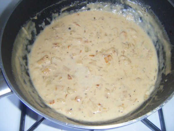 So I diced an onion and started to sautee it.  Impulsively, I threw some sugar on it and let the onions carmelize a bit before adding garlic and then the cream and cheese.    My impulse was a good one.  This stuff is delicious and is comforting me as I pore over administrative law rulings and try to cope with spring allergies.
