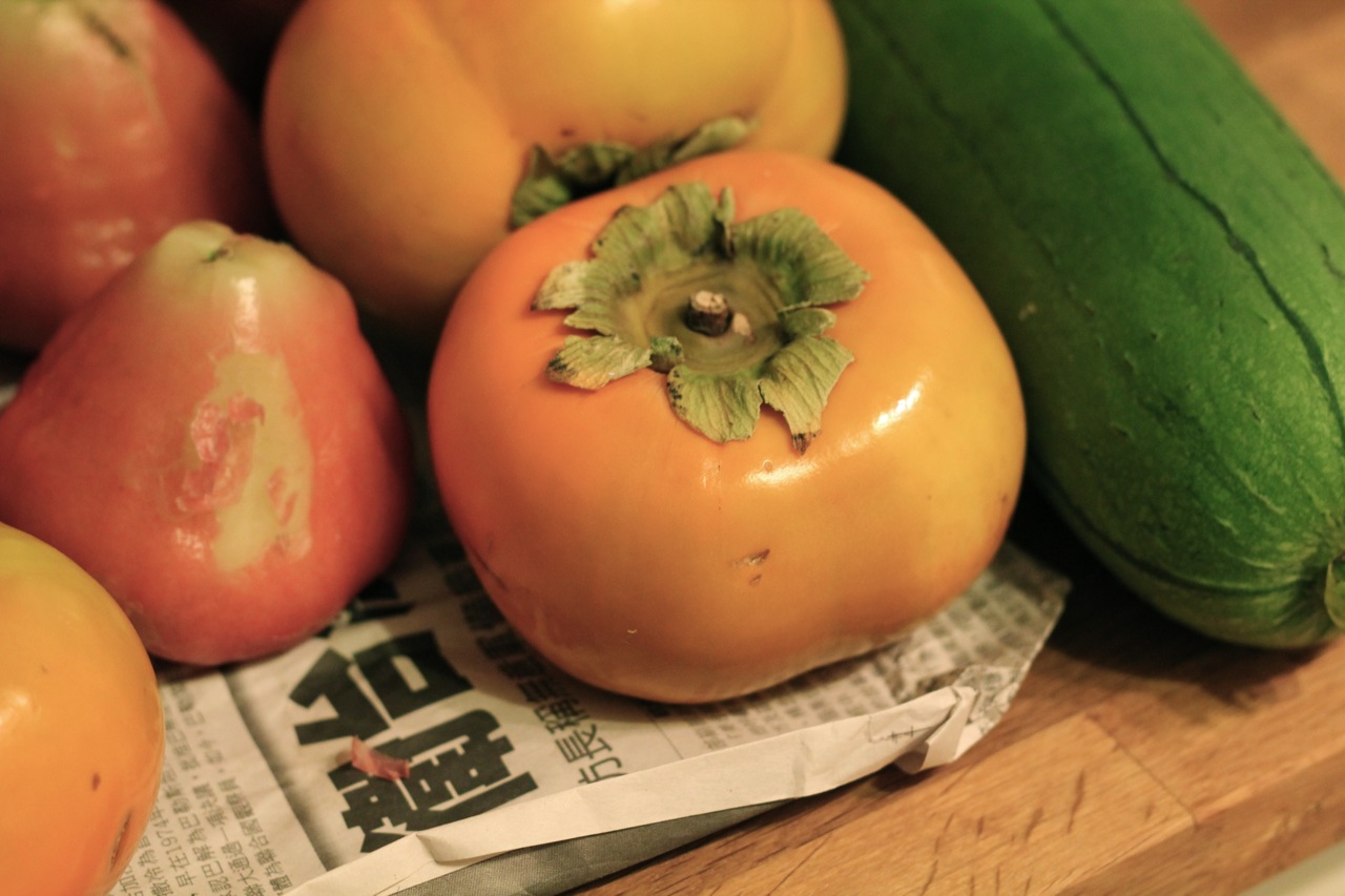 To the sounds of Michael Buble crooning about bells, Santas, and holy nights, I chopped persimmons, blended butter and flour, and imagined the upcoming holidays with all those I consider family. The persimmon tart turned out lovely that first time – beautiful crust with a thin layer of crispy cinnamon persimmons with just a hint of spice. Unfortunately, when I tried to recreate the tart as a thank you to the gardener on Thanksgiving day, I made a couple mindless mistakes and it turned out much less appetizing. Maybe the Christmas music was a necessary part of the baking process after all.