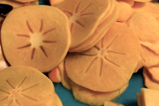 2 persimmons, peeled, and sliced 1/8-inch thick