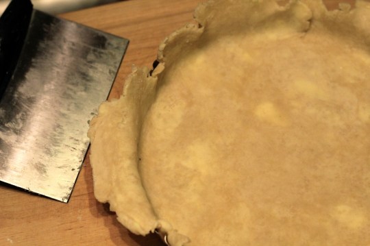 Make dough: Using a pastry blender or your hands to blend together flour, butter, and salt. Add 2 tablespoons ice water and incorporate. If mixture doesn’t hold together when you squeeze a small handful, add more water a teaspoon at a time. Continue adding ice water until mixture resembles a coarse meal with pea-sized butter lumps.