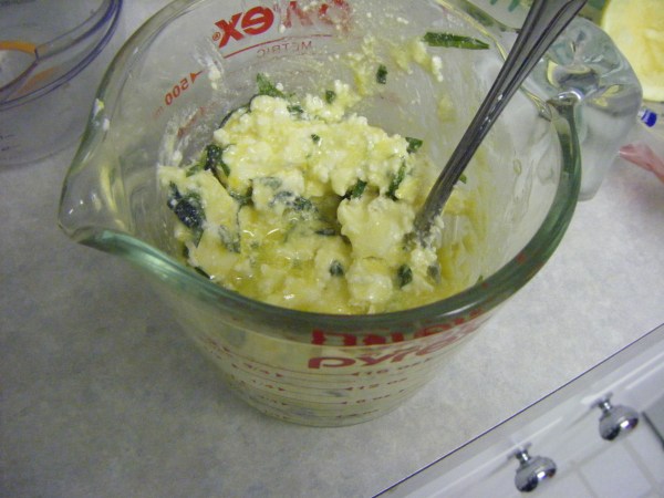 • 6 oz goat cheese (a 5 oz log works fine, but why not get a 10 oz log, use 6 oz, and have leftovers? mmmm.  also, don’t get pre-crumbled cheese, which does not melt as easily)