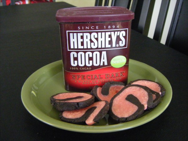 I’m including the full instructions below, but if you’ve made the chocolate almond swirls, the key difference is that you use the strawberry extract instead of the almond extract, the dark cocoa instead of the Dutch-process cocoa, and you also add red food dye to the “white” dough if you want the non-chocolate portion to be pink.