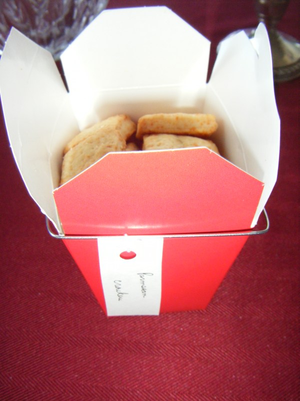 As a bonus, here’s a fun idea for packaging: Chinese food takeout containers.  You can get them in a variety of colors and sizes, which I discovered during a baking project that hit a speed bump when I discovered the dollar store near our apartment does not sell cookie tins.  I do not pay more than a $1 for cookie tins because I don’t want to ask for them back and I am cheap, so this was a problem (and might I say, one I have never encountered before, but then again, I’m usually living near a Dollar Tree, and they almost always have cookie tins).  Instead of spending a bajillion dollars on the only cookie tins I could find in our area, I ordered some of these containers online, and made little labels for them with paper and twine that named what each baked good was. Fun and functional.