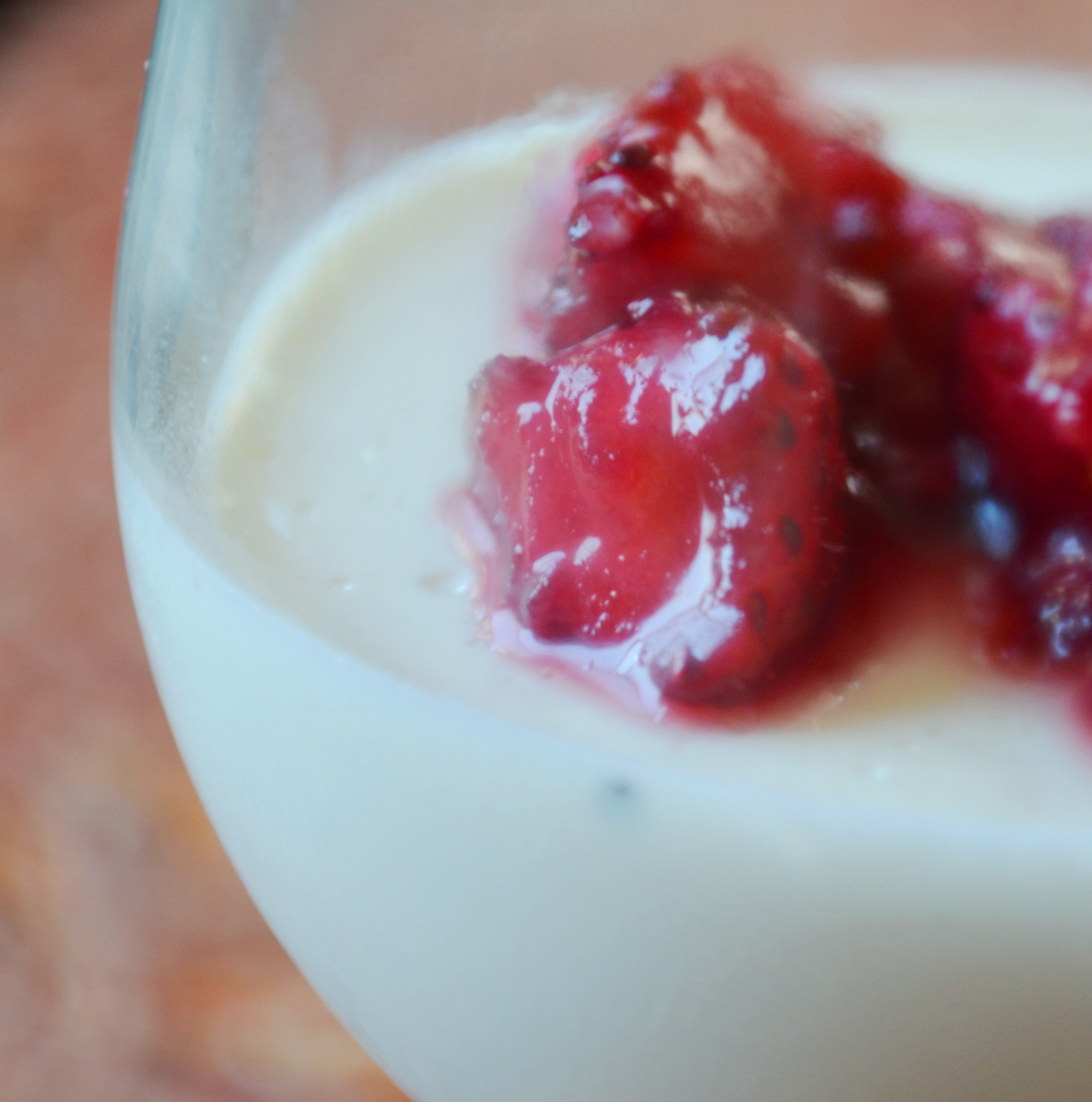Top the panna cotta with the strawberries just before serving (so the panna cotta doesn’t get soggy).