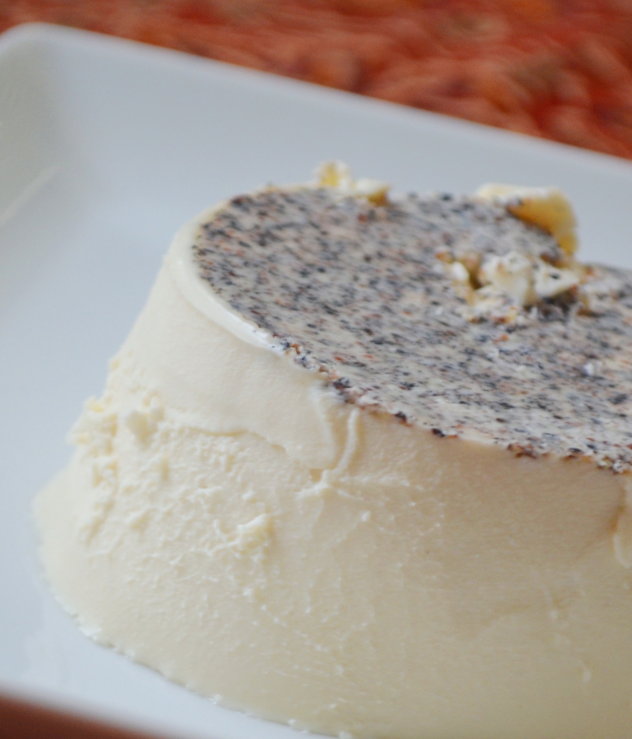 After the cream mixture is hot again, pour it over the gelatin. Stir the cream & gelatin mixture until the gelatin is completely dissolved (stirring with a fork helps). Pour into the greased custard cups or into wine glasses. Cover with plastic wrap and refrigerate for 2-4 hours, until set – place at the back of the fridge, if you can, to speed up the setting process.