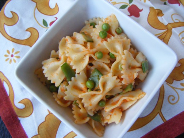 Pasta Salad with Peas and Roasted Red Pepper Vinaigrette
